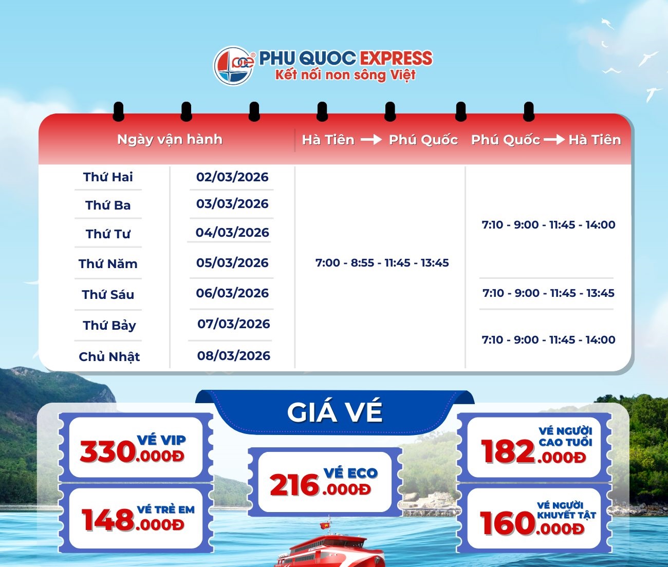 Lịch tàu Phú Quốc Express Hà Tiên - Phú Quốc và đặt vé online tại: