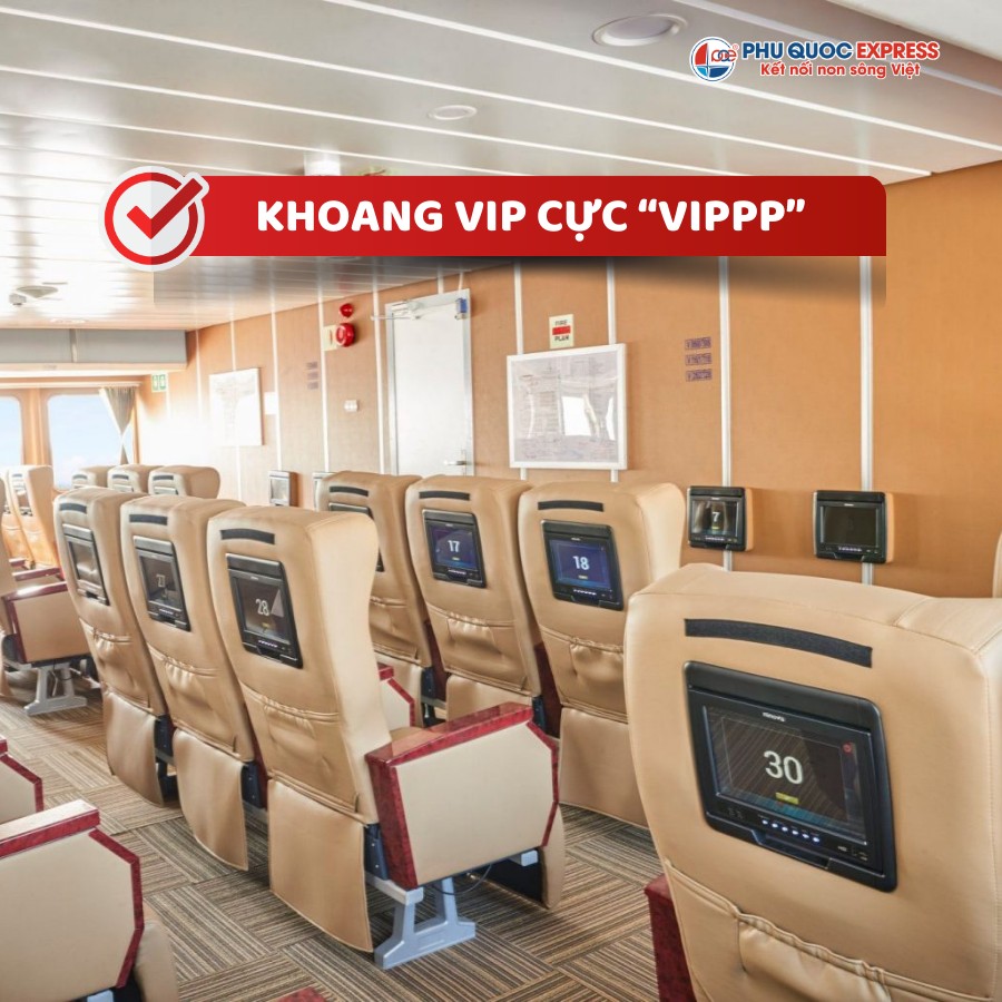 Tiện nghi hiện đại, chuẩn 5 sao: Nội thất sang trọng, ghế ngồi da cao cấp, điều hòa mát lạnh. Hệ thống màn hình giải trí, wifi, toilet sạch sẽ trên tàu. Có khoang VIP riêng, phục vụ nước uống miễn phí.