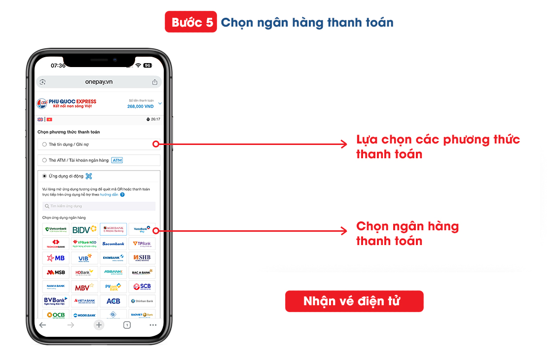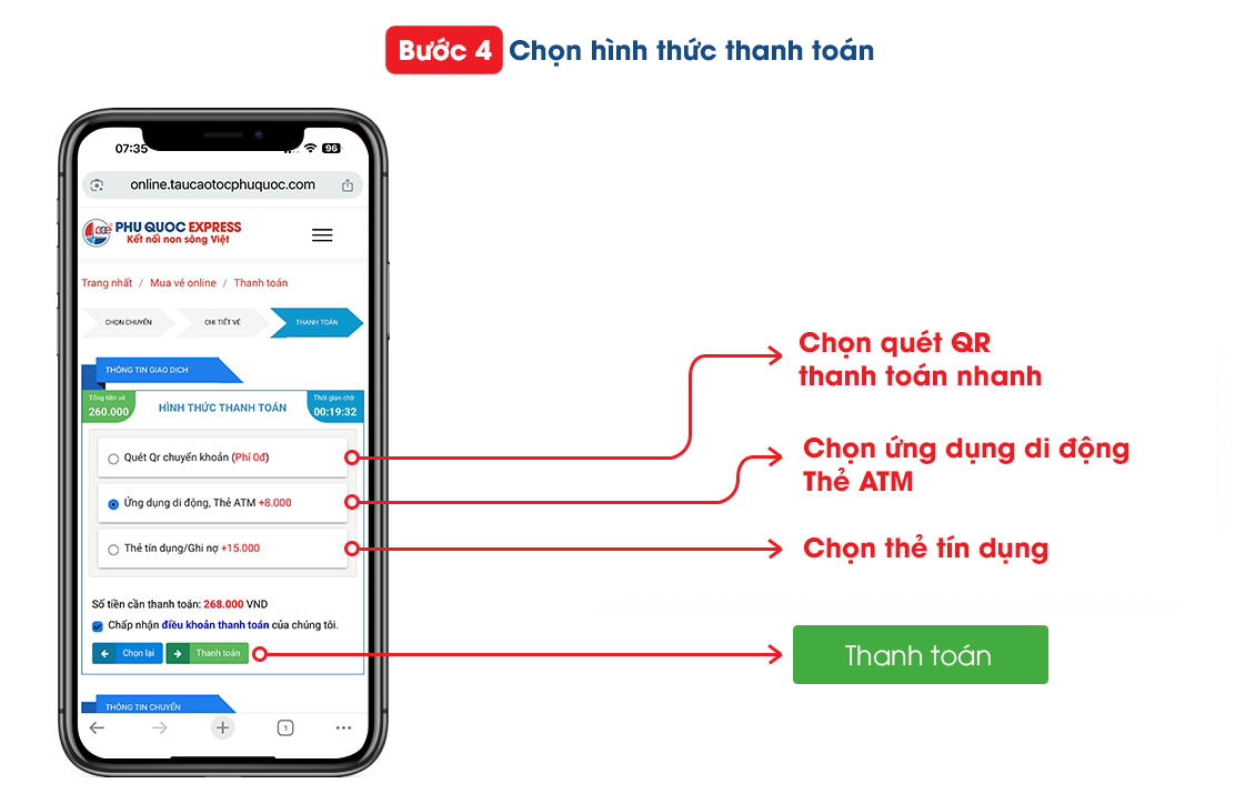 Hướng dẫn thanh toán vé tàu Phú Quốc bao gồm các bước sau: