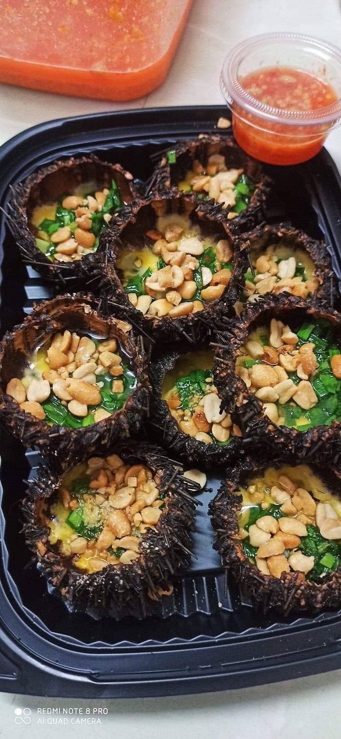 Những món nhất định nên thử: Trứng tráng nhum (cầu gai), cháo nhum, gỏi tỏi đặc sản, chả cá chiên (cá đánh bắt từ vùng biển xa), gỏi rong biển tươi, các loại ốc, cua hoàng hậu…