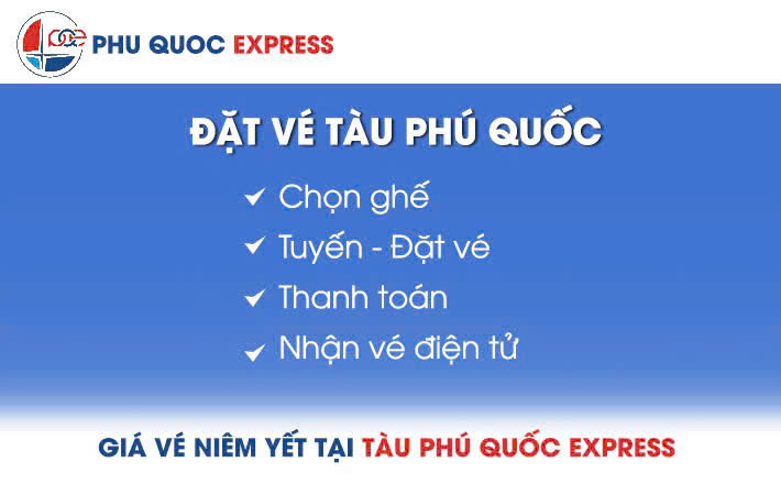 Vé tàu Hà Tiên đi Phú Quốc tàu Phú Quốc Express và đặt vé trực tuyến: Chọn chỗ → điền thông tin hành khách → thanh toán và nhận vé điện tử.