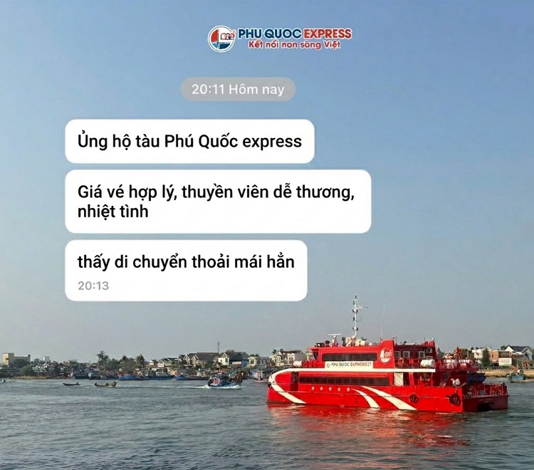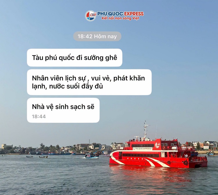 Ngày 17/4 tàu Phú Quốc Express 27 đã chính thức vận hành chuyến đầu tiên trên hải trình Sa Kỳ - Lý Sơn. Trong ngày đầu vận hành đã nhận được những phản hồi tích cực từ hành khách. Đây cũng là động lực để đội tàu Đỏ Phú Quốc Express tiếp tục phát huy và không ngừng nâng cao chất lượng dịch vụ cùng đội ngũ thuyền viên chuyên nghiệp trên mỗi hải trình.