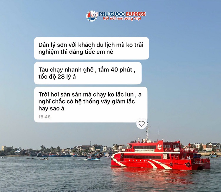 Dưới đây là những đánh giá từ khách hàng sau khi trải nghiệm chuyến tàu đầu tiên từ Sa Kỳ đi Lý Sơn: