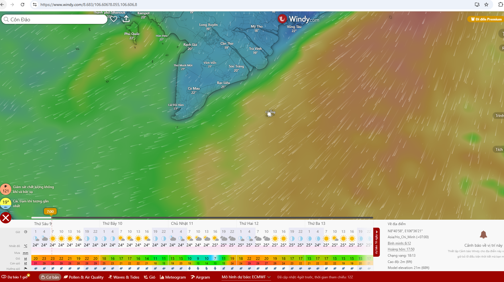 Nên kiểm tra dự báo thời tiết thông qua các nguồn đáng tin cậy như: AccuWeather, Windy (đặc biệt hữu ích để xem tốc độ gió và sóng biển) hoặc trang web của Trung tâm Dự báo Khí tượng Thủy văn Quốc gia.