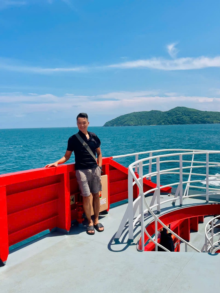 - Góc chụp ảnh "sống ảo": Boong tàu rộng cho phép hành khách hóng gió biển, ngắm nhìn bọt sóng trắng xóa cuộn lên từ động cơ và bắt trọn những khoảnh khắc hùng vĩ khi tàu tiến gần đến những hòn đảo của quần đảo Côn Sơn.